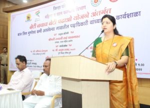 स्वातंत्र्याचा अमृत महोत्सवी वर्षानिमित्त महिला व बालकल्याण विभागाच्यावतीने ‘बेटी बचाव बेटी पढाओ’ योजनेअंतर्गत बाल लिंग गुणोत्तर कमी असलेल्या गावातील पदाधिकाऱ्यांकरीता कार्यशाळा आयोजित करण्यात आली होती, यावेळी त्या बोलत होत्या.यावेळी जिल्हा परिषदेचे मुख्य कार्यकारी अधिकारी आयुष प्रसाद, पोलीस सह आयुक्त संजय शिंदे, अप्पर पोलीस अधीक्षक (ग्रामीण) मितेश घट्टे, उपमुख्य कार्यकारी अधिकारी जामसिंग गिराशे, पोलीस पाटील संघटनेचे अध्यक्ष बाळासाहेब शिंदे आदी उपस्थित होते.