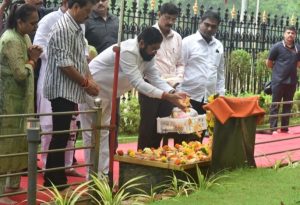 गुरू पौर्णिमेनिमित्त मुख्यमंत्री शिंदे यांनी आज दादर शिवाजी पार्क येथील स्मृतिस्थळावर वंदनीय हिंदुहृदयसम्राट बाळासाहेब ठाकरे यांना अभिवादन केले. त्यानंतर ते माध्यम प्रतिनिधींशी बोलत होते.