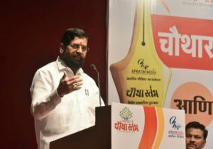 आज पत्रकार दिनानिमित्त मुंबई येथे यशवंतराव चव्हाण प्रतिष्ठान सभागृह येथे अप्रतिम मीडिया न्युज नेटवर्क ने आयोजित केलेल्या चौथा स्तंभ राज्यस्तरीय पत्रकारिता पुरस्कार प्रदान कार्यक्रमात मुख्यमंत्री श्री. शिंदे बोलत होते. यावेळी इतर मागास बहुजन कल्याण विभागाचे अतिरिक्त मुख्य सचिव नंदकुमार, मुख्यमंत्री कार्यालयाच्या पायाभूत सुविधा कक्षाचे महासंचालक राधेश्याम मोपलवार, विठ्ठल सहकारी साखर कारखान्याचे अध्यक्ष अभिजित पाटील, मंत्रालय विधिमंडळ पत्रकार संघाचे अध्यक्ष मंदार पारकर, सिने अभिनेते आणि दिग्दर्शक मंगेश देसाई, विवेक देशपांडे, रंजीत कक्कड आणि अप्रतिम मीडियाचे संचालक डॉ. अनिल फळे आदींची व्यासपीठावर उपस्थिती होती.