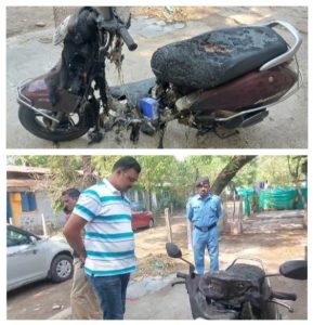मध्यरात्री 2.30 वाजण्याच्या सुमारास रजपूत यांच्या पत्नी लहान मुलीला पाणी पाजण्यासाठी उठल्या असता घरासमोर आग लागल्याचे निदर्शनास आले ही बाब त्यांनी अमोल रजपूत यांना सांगितल्यानंतर बाहेर येऊन पाहिले असता अज्ञात इसमाने त्यांच्या दुचाकीला आग लावल्याचे दिसले. सदरील आग पाणी टाकून विझवण्यात आली मात्र तोपर्यंत गाडी जळून मोठे नुकसान झाले होते.